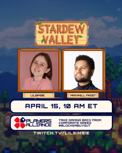 We’re excited to announce that Players Alliance will be having Congressman Maxwell Frost and Lilsimsie, a HUGE Sims content creator, going live on Twitch together on Wednesday, April 15, 2026 10:00 AM ET Emceed by the one and only, Zefrine!